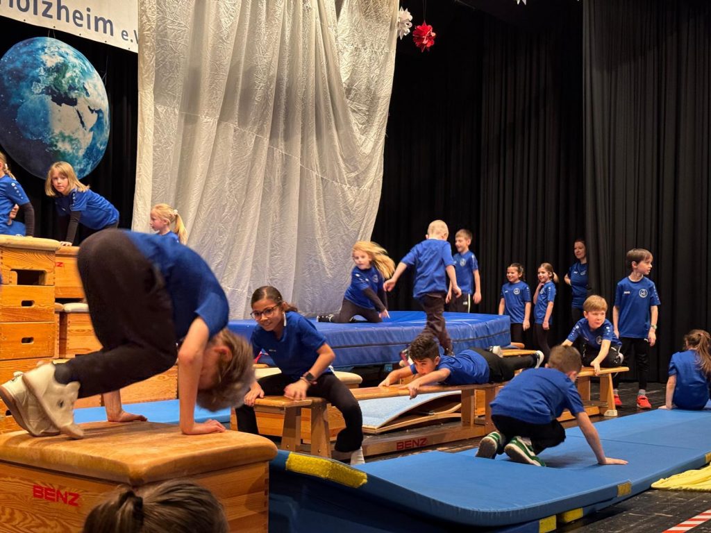 Die Kinderturngruppen I–III (6–10 Jahre) stellten in sportlichen und akrobatischen Szenen dar, wie Weihnachten in unterschiedlichen Kulturen gefeiert wird – von Europa über Amerika bis nach Asien.