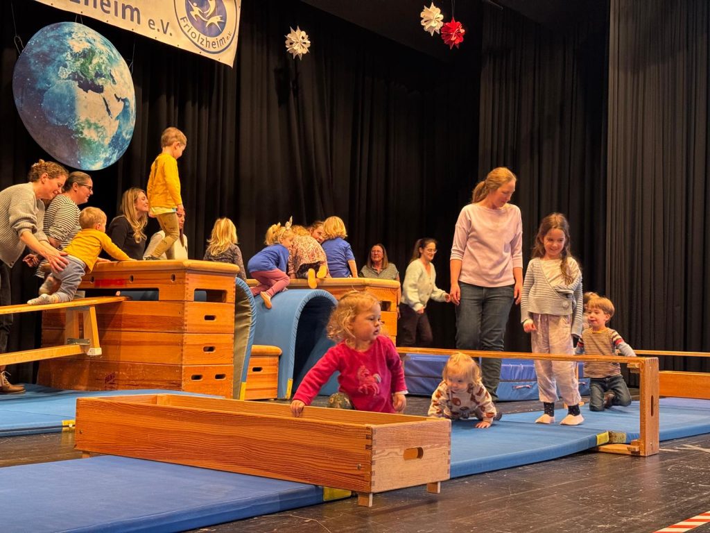 Die Eltern-Kind-Zwerge und Turnzwerge (1–3 Jahre) zeigten liebevolle kleine Bewegungsstücke und „reisten“ spielerisch durch verschiedene Länder.