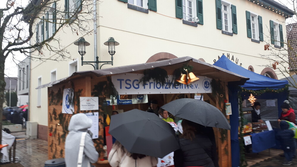 Wir danken allen Besucherinnen und Besuchern, die sich trotz sehr regnerischem und trübem „Herbst“-Wetter an unserem Stand auf dem Friolzheimer Weihnachtsbasar mit Glühwein und Punsch aufgewärmt und mit Schupfnudeln gestärkt haben. Auch die Kinder waren wie schon im Vorjahr, von unserem Popcorn und den Schokobananen begeistert.